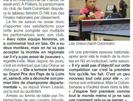 Les finales nationales par classement se sont déroulées ce week-end à Poitiers. Samedi Léa fait 2 très bons matchs, en les gagnant tous les deux elle termine 1ère de poule et se qualifie directement en 16ème de finale. Le dimanche elle se fait éliminer dès le premier match (en 16ème), […]